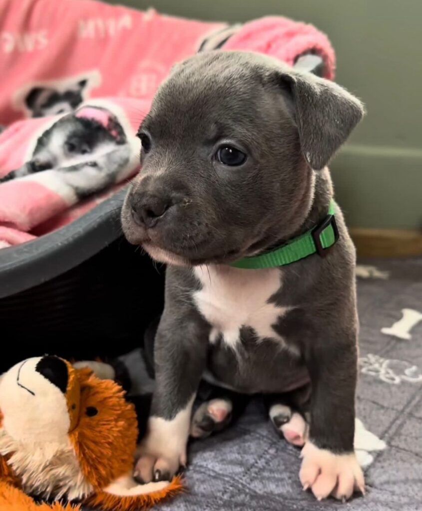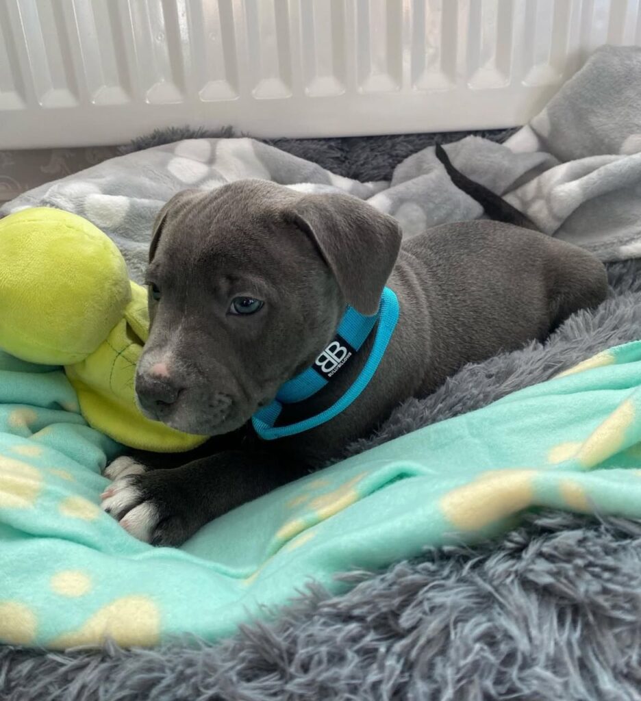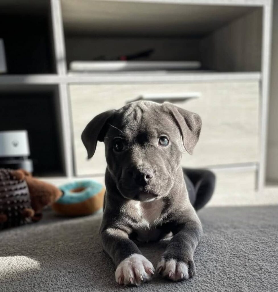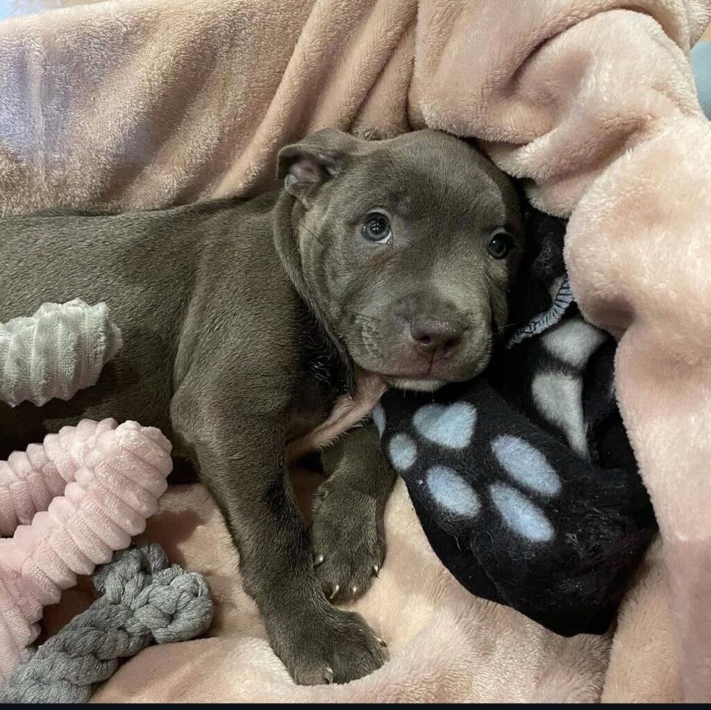 Rosie is gentle, calm, and deeply affectionate. She has a soothing presence and enjoys quiet moments as much as playtime. Rosie is very people-oriented and forms close bonds with those around her. She would make a wonderful family pet or companion for someone looking for a loving and emotionally intuitive Staffy.